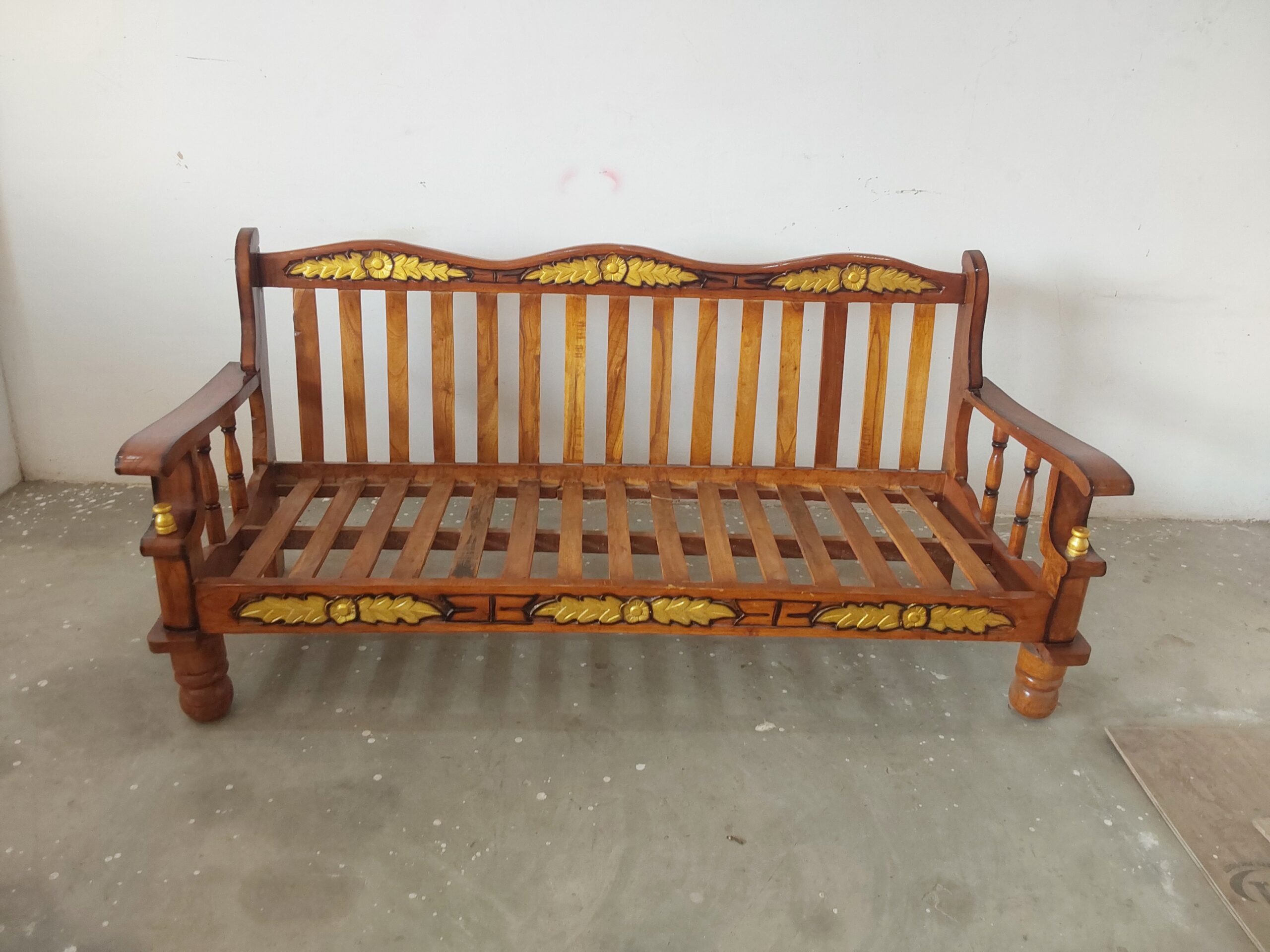 Bring timeless elegance and wellness-inspired comfort to your living space with this Classic Carved Design Sofa, thoughtfully crafted with Ayurveda principles in mind. Its intricate carvings and ergonomic design provide both aesthetic charm and holistic support for a relaxing seating experience. The matching center table completes the ensemble, offering functionality alongside style.