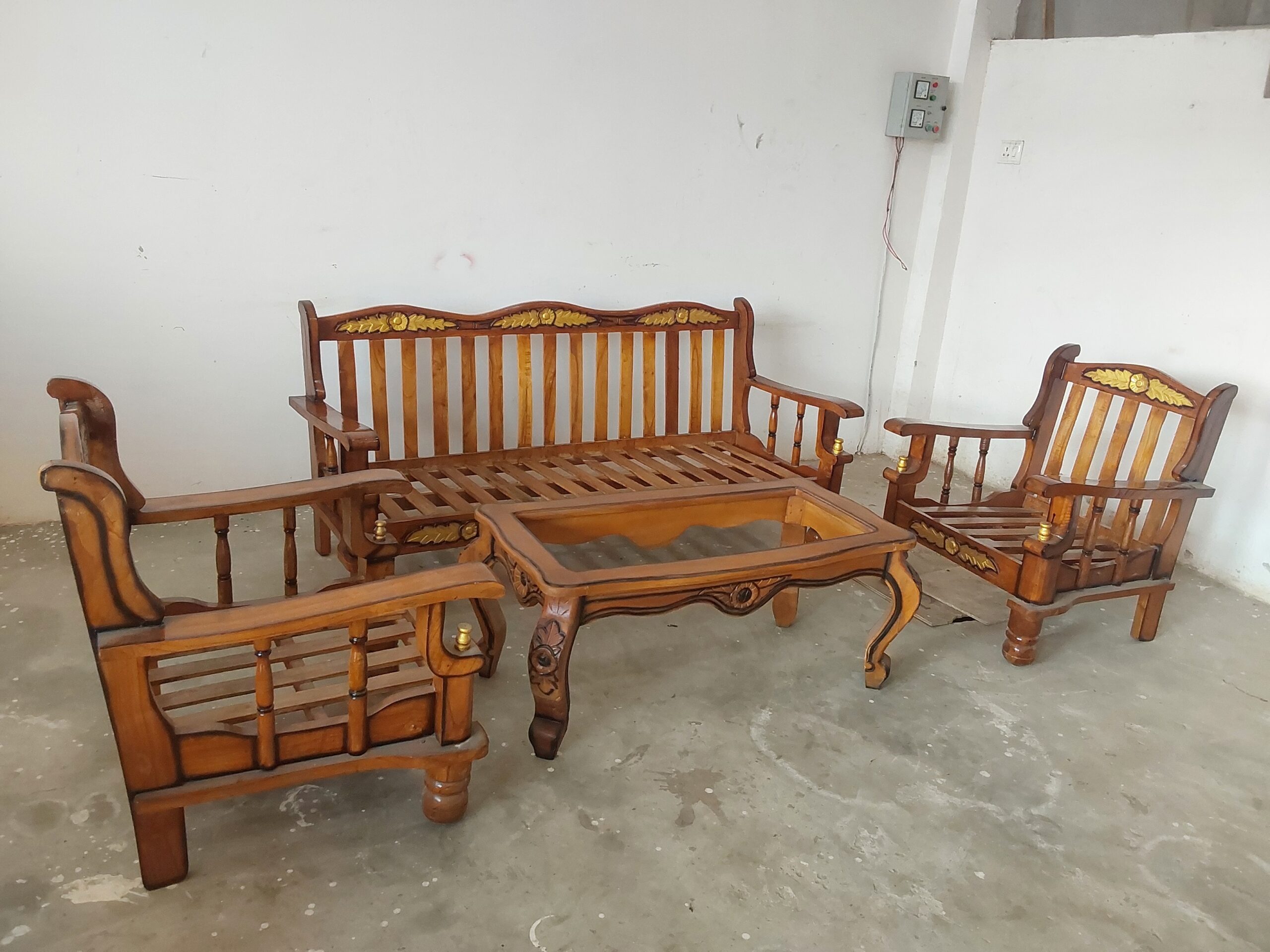 Transform your home into a luxurious and wellness-focused living space with this carved sofa set and center table.