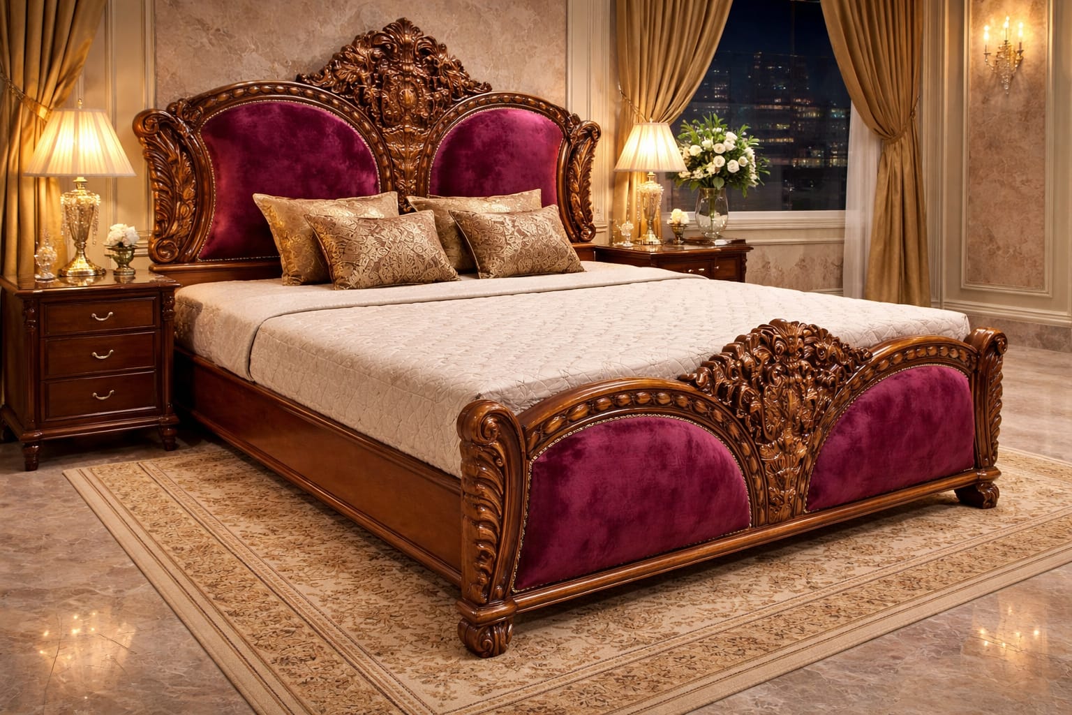 Upgrade your bedroom with our luxurious King Size Bed with Cushion, designed to bring elegance, comfort, and durability together in one perfect piece. Crafted with high-quality wood and finished with a smooth polish, this bed adds a royal touch to any modern or classic bedroom interior.